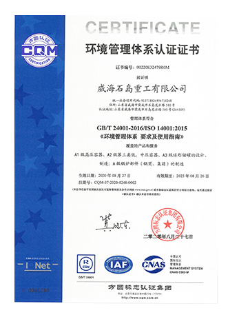 環(huán)境管理體系認證證書
